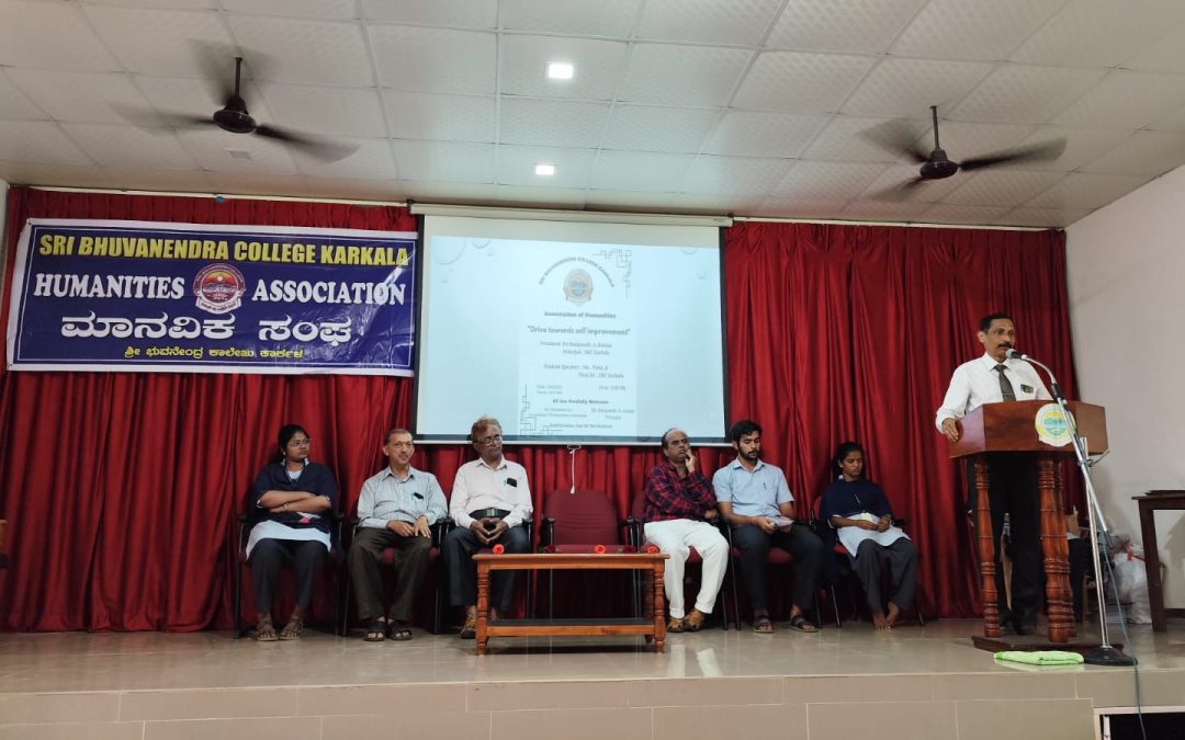 Sri Bhuvanendra College’s Humanities Association held a lecture on “Self Improvement” on 28-08-2024.  Student Viola stressed independent thinking for personal growth. Principal Dr. Kotian advised students to embrace change and acquire future skills.